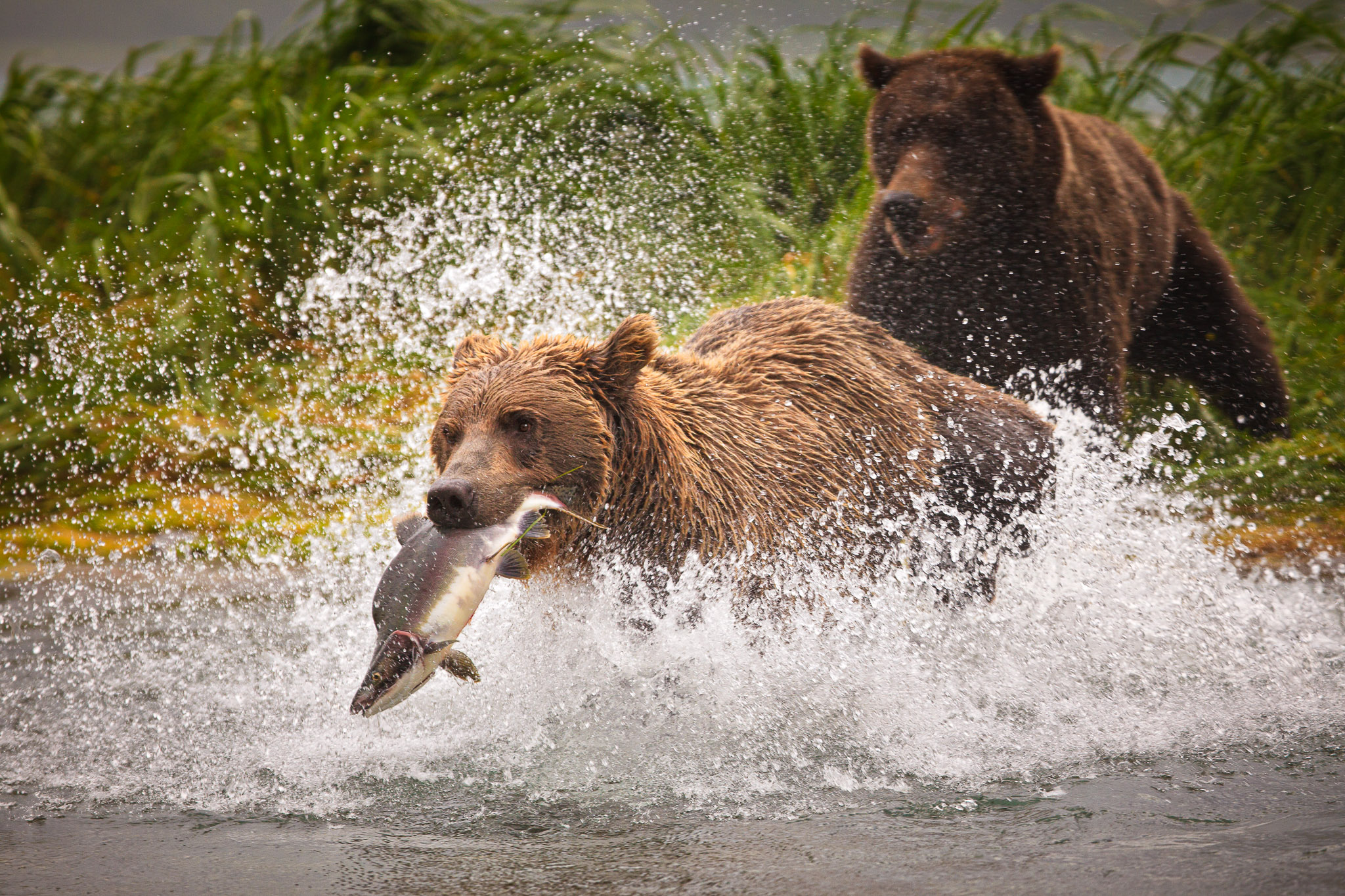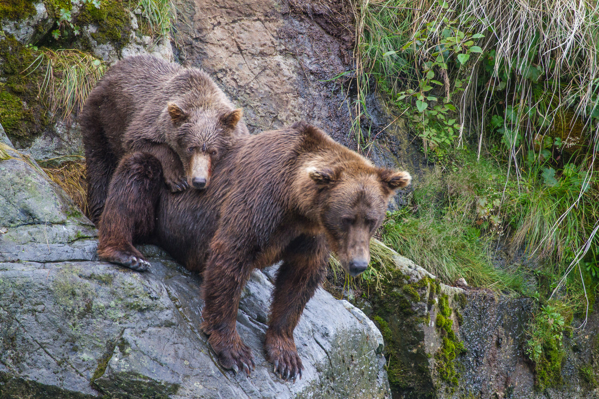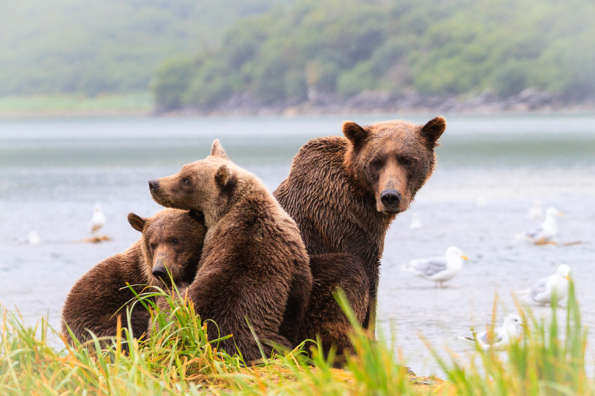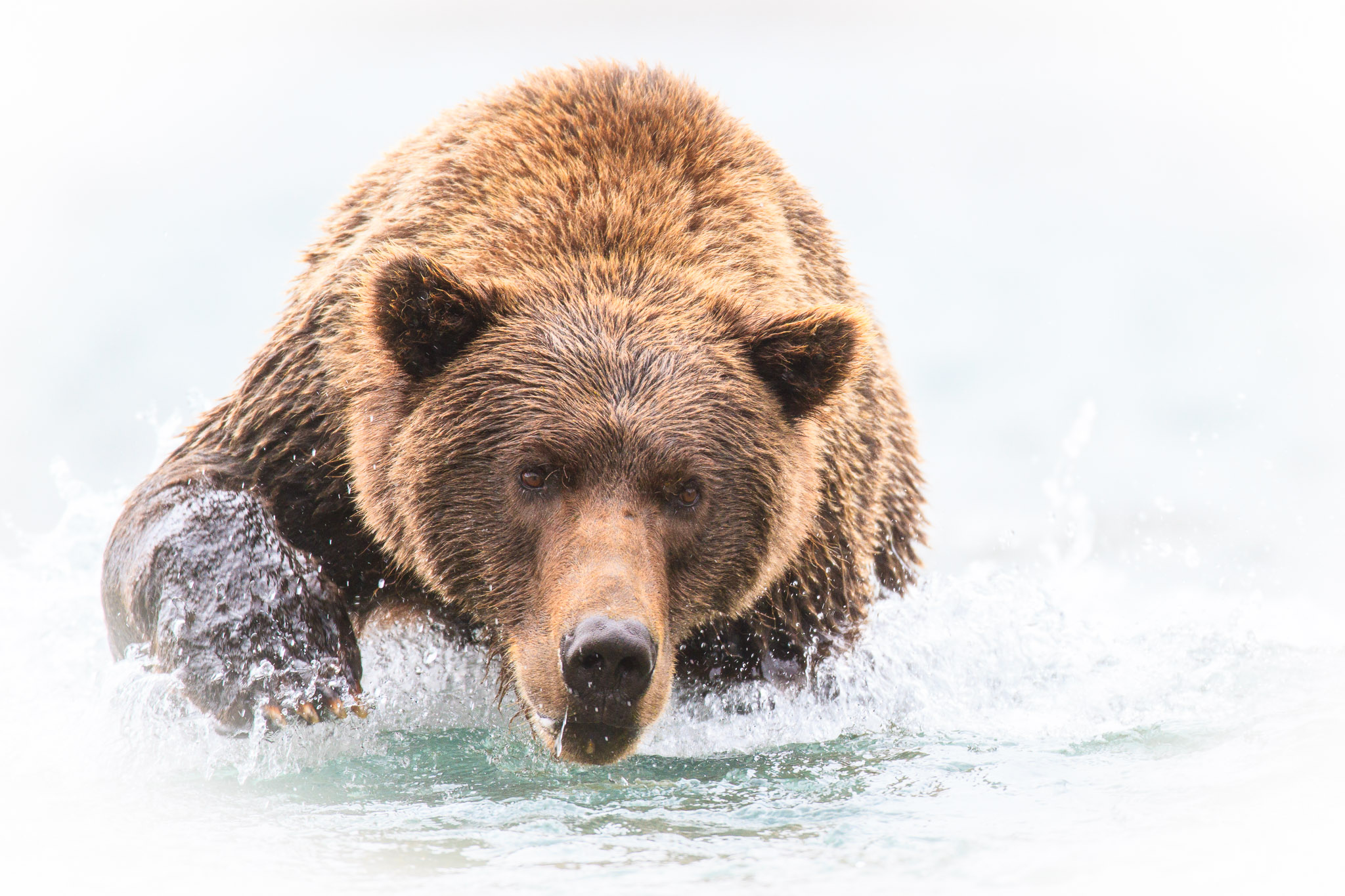 There are several recognized subspecies within the brown bear species. In North America, two types are generally recognized, the coastal brown bear and the inland grizzly, and the two types could broadly define all brown bear subspecies. Grizzlies weigh as little as 350 lb (159 kg) in Yukon, while a brown bear, living on a steady, nutritious diet of spawning salmon, from Coastal Alaska and Russia can weigh 1500 lb (682 kg). The exact number of overall brown subspecies remains in debate.