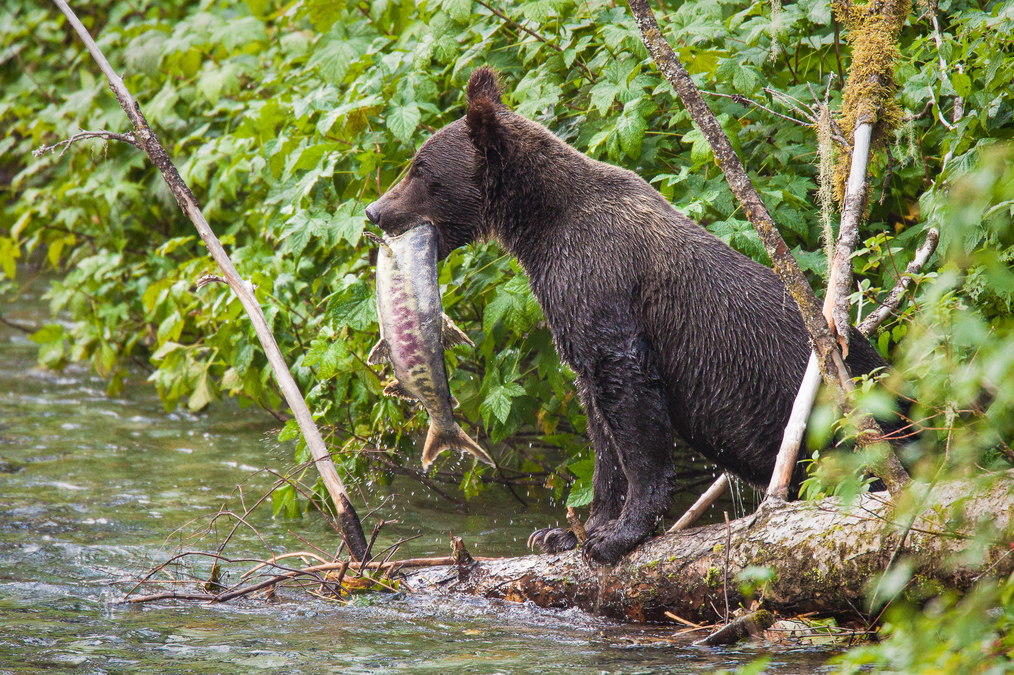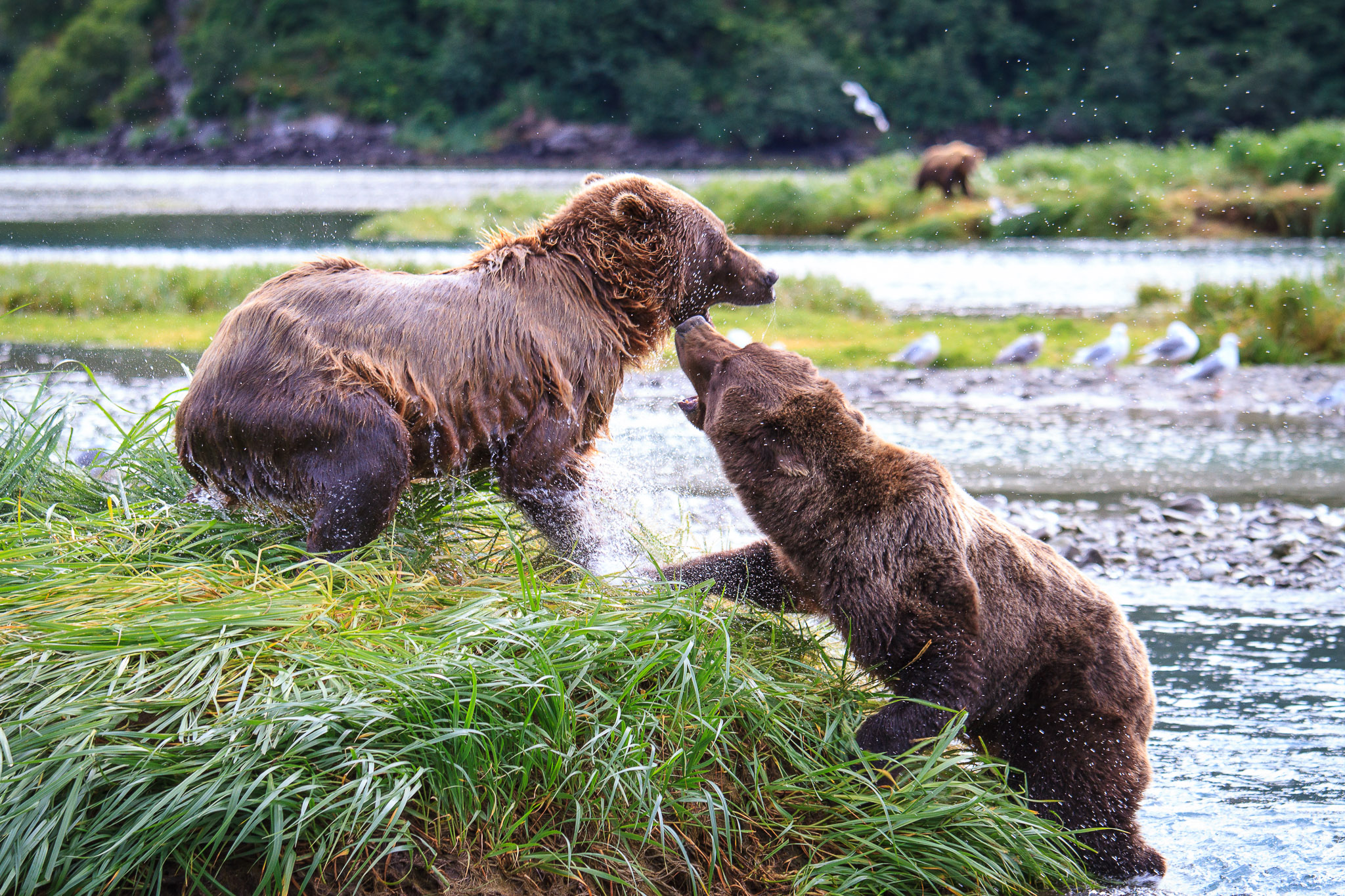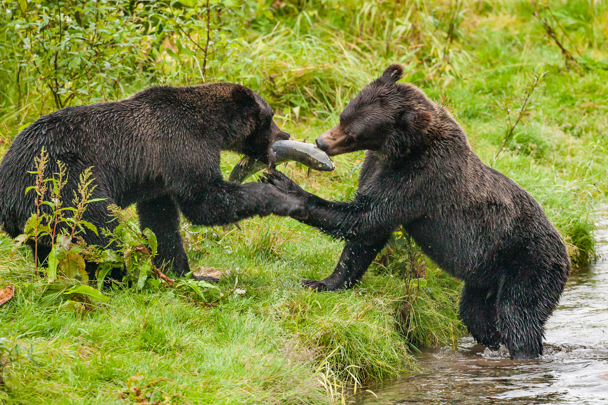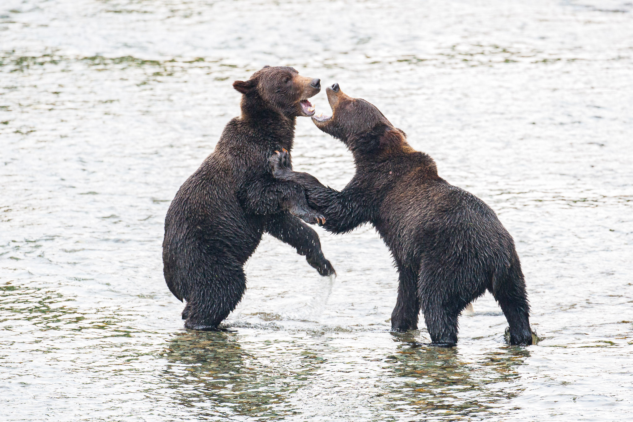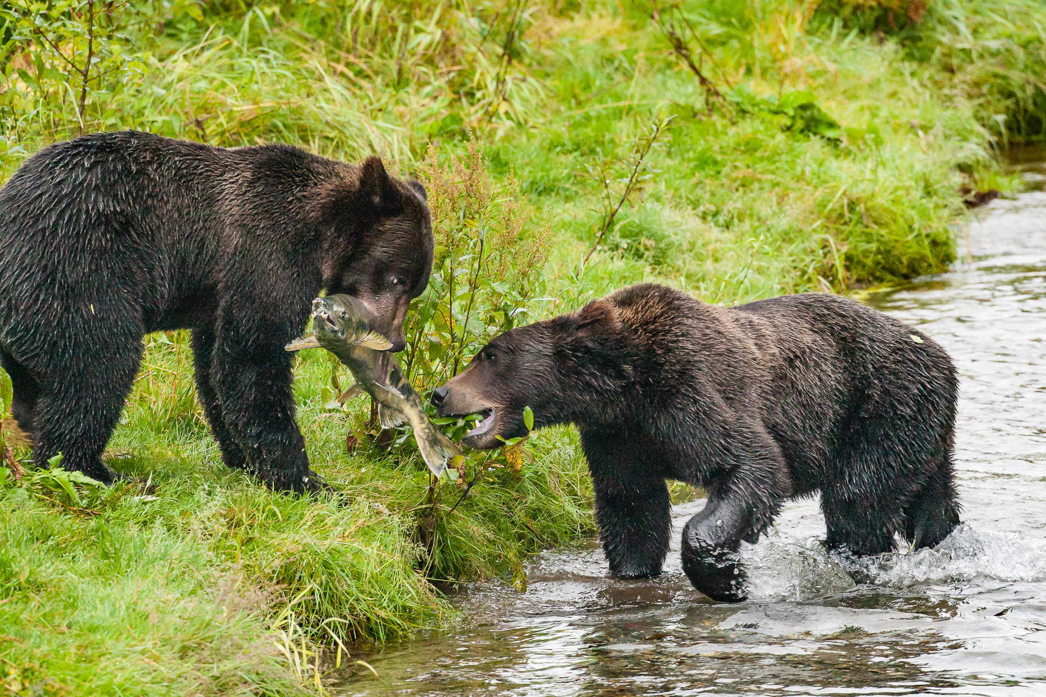 There are several recognized subspecies within the brown bear species. In North America, two types are generally recognized, the coastal brown bear and the inland grizzly, and the two types could broadly define all brown bear subspecies. Grizzlies weigh as little as 350 lb (159 kg) in Yukon, while a brown bear, living on a steady, nutritious diet of spawning salmon, from Coastal Alaska and Russia can weigh 1500 lb (682 kg). The exact number of overall brown subspecies remains in debate.
