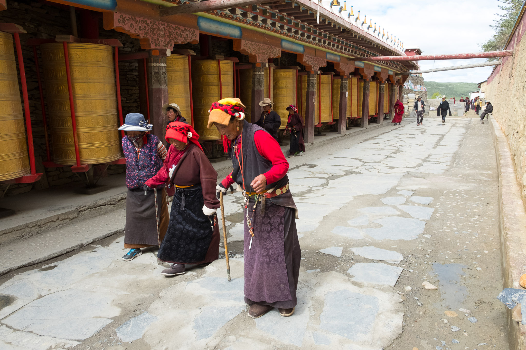 Tibetans are the most religious people I have experienced. They dress most often in traditional clothing, wear prayer beads and regularly walk around the numerous and beautiful temples in prayer. Where there are large prayer wheels they also spin the wheels to send prayers to heaven.